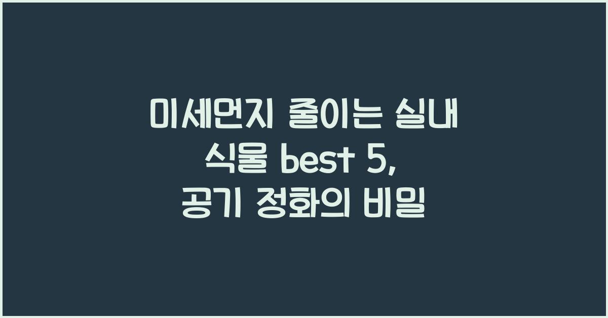 당신의 집, 사무실에서 숨쉬기가 힘들어지진 않으셨나요? 특히 미세먼지로인해 공기가 탁해지는 요즘, 실내 공기 질에 대한 고민이 깊어집니다. 이런 문제를 해결하려면 실내에서 키울 수 있는 식물들이 큰 도움이 될 수 있습니다. 오늘은 미세먼지 줄이는 실내 식물 best 5에 대해 알아보겠습니다. 이 식물들은 단순히 예쁜 인테리어가 아니라, 우리의 건강을 지켜주는 숨은 영웅입니다.미세먼지 줄이는 실내 식물 best 5의 놀라운 효능첫번째로 소개할 식물은 바로 스파티필럼입니다. 이 식물은 공기 중의 유해물질을 제거하는 능력이 뛰어나며, 특히 포름알데히드와 같은 독소를 흡수하는 데 큰 역할을 합니다. 스파티필럼은 관리가 용이하여 물주기도 간편하고, 공간을 아름답게 꾸며주는 매력이 있습니다.두번째로 추천하는 식물은..