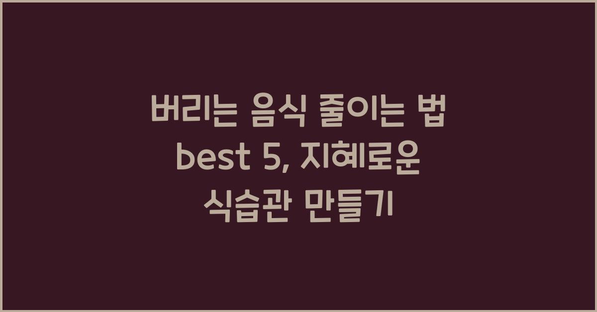 현대 사회에서 버리는 음식은 한 해에 수천 톤에 달하곤 합니다. 여러분은 한번 생각해 보셨나요? 우리가 얼마나 많은 음식을 그냥 버리는지. 버리는 음식 줄이는 법 BEST 5를 통해 지혜로운 식습관을 만들어보세요!음식물 쓰레기를 줄이려면 먼저 식습관을 점검해야 합니다. 남는 음식을 잘 관리하고, 식사를 계획하는 것이 중요해요. 저와 함께 버리는 음식 줄이는 법 BEST 5에 대해 알아보시죠!1. 남은 음식 활용하기첫 번째로, 남은 음식을 활용하는 방법이 있습니다. 남아 있는 찌개와 반찬, 밥 등으로 새로운 요리를 만들어 보세요. 예를 들어, 남은 밥으로 볶음밥을 만들거나, 찌개에 신선한 채소를 추가하여 맛을 더할 수 있습니다. 이렇게 하면 남은 음식을 버리지 않고도 훌륭한 한 끼를 만들 수 있습니다.또한..